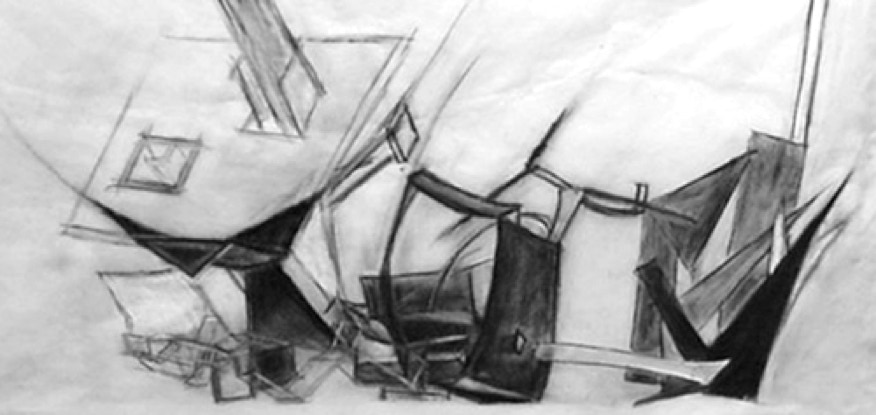 A charcoal study on paper, inspired by the conceptual research, was manipulated to developed the spatial form intuitively.