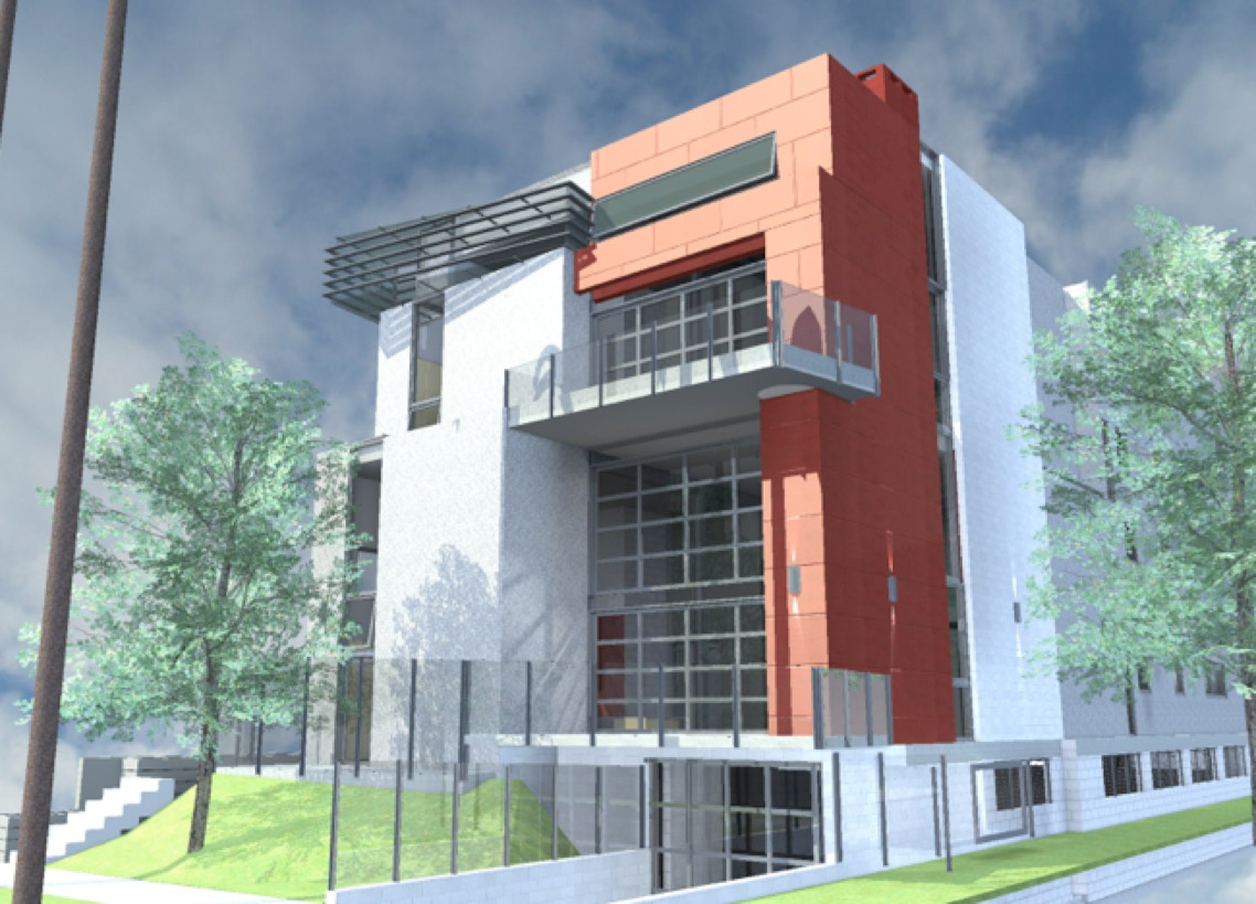 Passive solar design features include deep exterior recesses and overhangs shading interior spaces and reducing solar heat gain as well as efficient double glazed, Low-E windows.