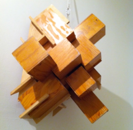 Plywood interlocking sculpture. Can hang on the wall (either side facing out) or sit on a table.