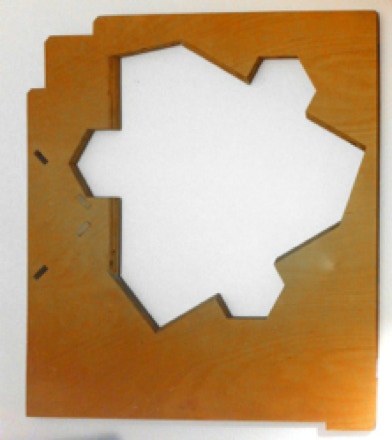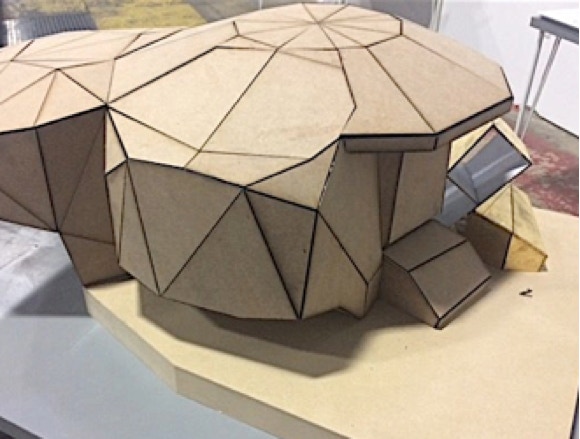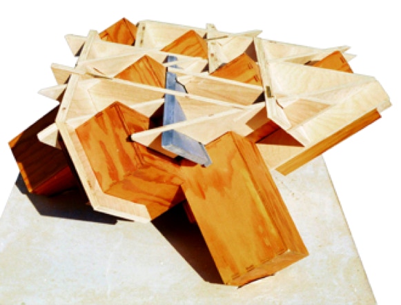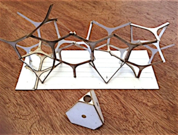 “3-point Study” Approx 12” x 4”x 6”h + truncated tetrahedron model. Laser cut museum board