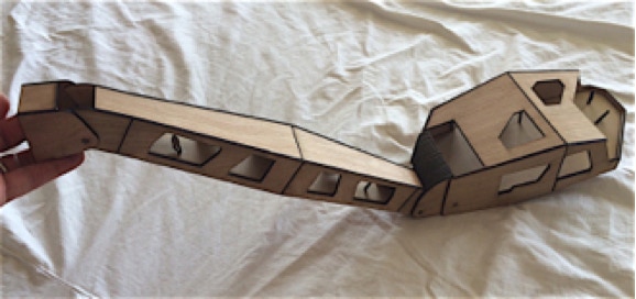 Luan plywood & MDF, laser cut with steel pins, articulated joints